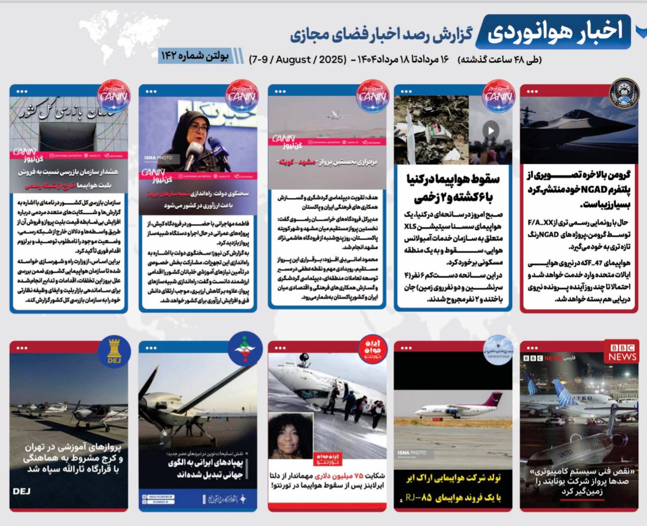 بولتن 17و 18 مرداد 1404 گزارش رصد اخبار هوانوردی، نیروی هوایی ایران و نیروی هوایی جهان طی 48 ساعت گذشته 18 - مرداد - 1404 نوشته های مشابه شماره ۲۱۰ بولتن هوانوردی منتشر شد شماره 209 بولتن هوانوردی منتشر شد
