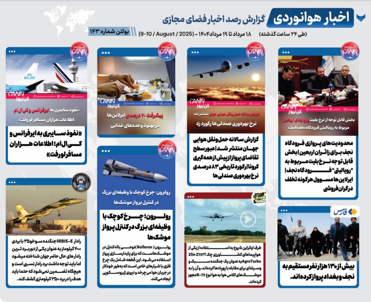 بولتن 19 مرداد 1404 گزارش رصد اخبار هوانوردی، نیروی هوایی ایران و نیروی هوایی جهان طی 24 ساعت گذشته 19 - مرداد - 1404 نوشته های مشابه شماره ۲۱۰ بولتن هوانوردی منتشر شد شماره 209 بولتن هوانوردی منتشر شد